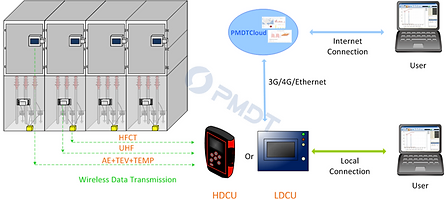 The PMDTiSmart is an Innovative, Intelligent, Ultimate Wireless Smart Sensor - Autonomous Online Testing System which builds a wireless smart sensor network to autonomously sample asset condition data periodically from Electric Power Equipment. The data collection units obtain data from the smart sensors wirelessly and upload the data to the PMDTCloud via 3G/4G/ethernet for data diagnostics.